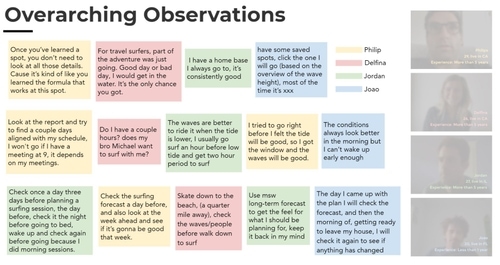 As a human-centered designer, it’s needless to say that understanding the surfers is critical in the design process. I didn’t have presumptions in this field because I don’t have any experience in surfing, which serves as a double-edged sword; it took me more time to get to know the basic knowledge and language, and conduct the secondary and competitive research. But when I talked to users and understood the reason they preferred onshore winds before they explained, I know that efforts pay off.