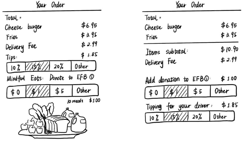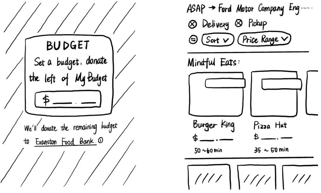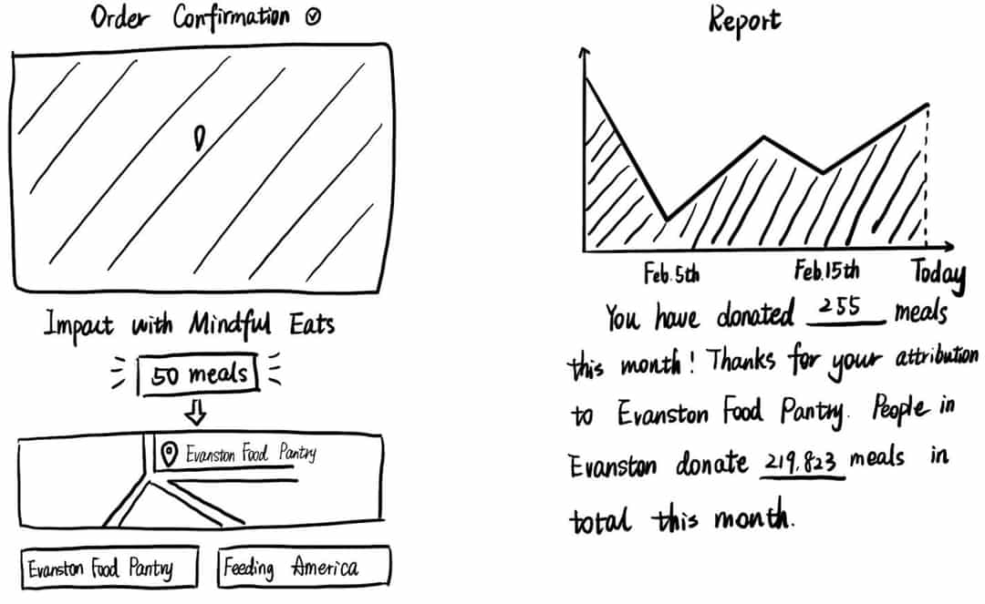 We did secondary research of Feeding America, made archives of previous programs, and found out how they addressed problems and get customers involved at the beginning to better understand the design space of grocery, retail, and restaurants.